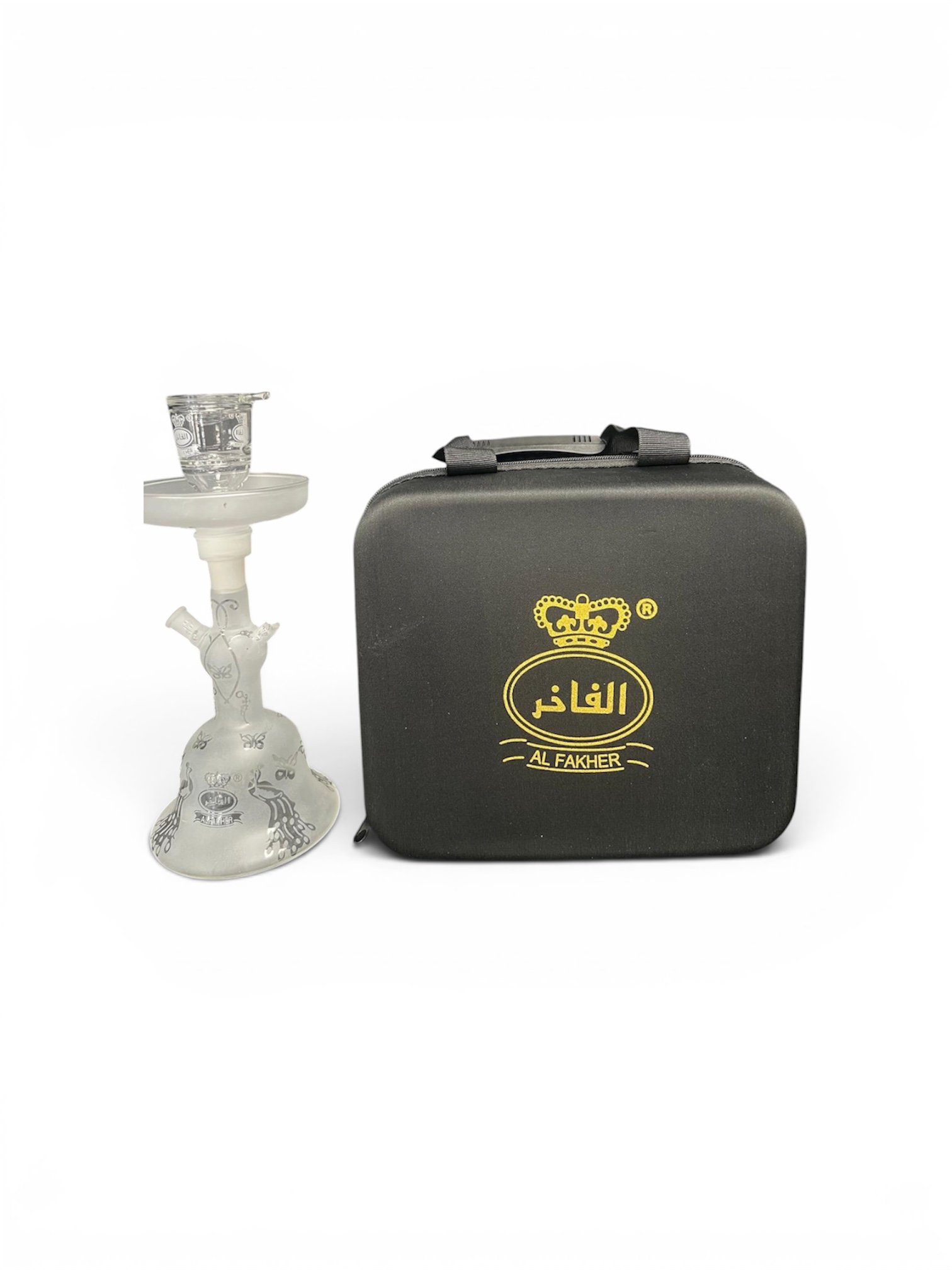 The Al Fakher Glass Hookah is a portable hookah with elegant design which makes it an eye-catching masterpiece. It includes a fancy suitcase to ease transportation of your hookah.