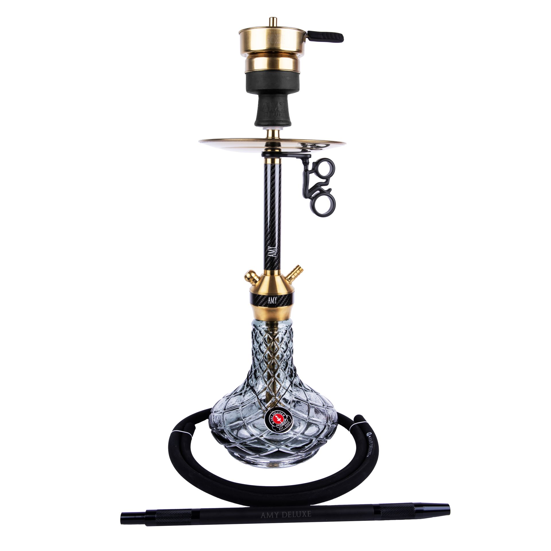 The Carbonica Hybrid S features modern carbon elements, robust stainless steel, and an ornate glass bowl. It combines maximum stability with low weight, making it both stylish and practical. With its elaborately decorated design, this shisha is a true eye-catcher.